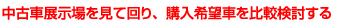 中古車は1台ごとに品質が異なる特殊な商品です。展示車の品質と価格を見極める必要があります。それには確かな技術に裏打ちされた販売員の誠意ある対応と、販売店の質が中古車選びの重要なポイントです。また自宅に近い販売店の方が定期点検や修理の際に便利かつ経済的でしょう。